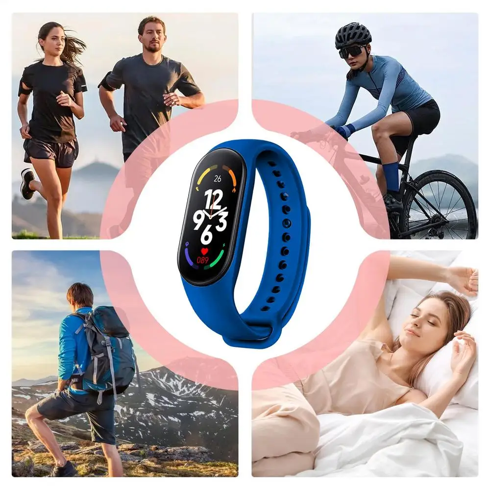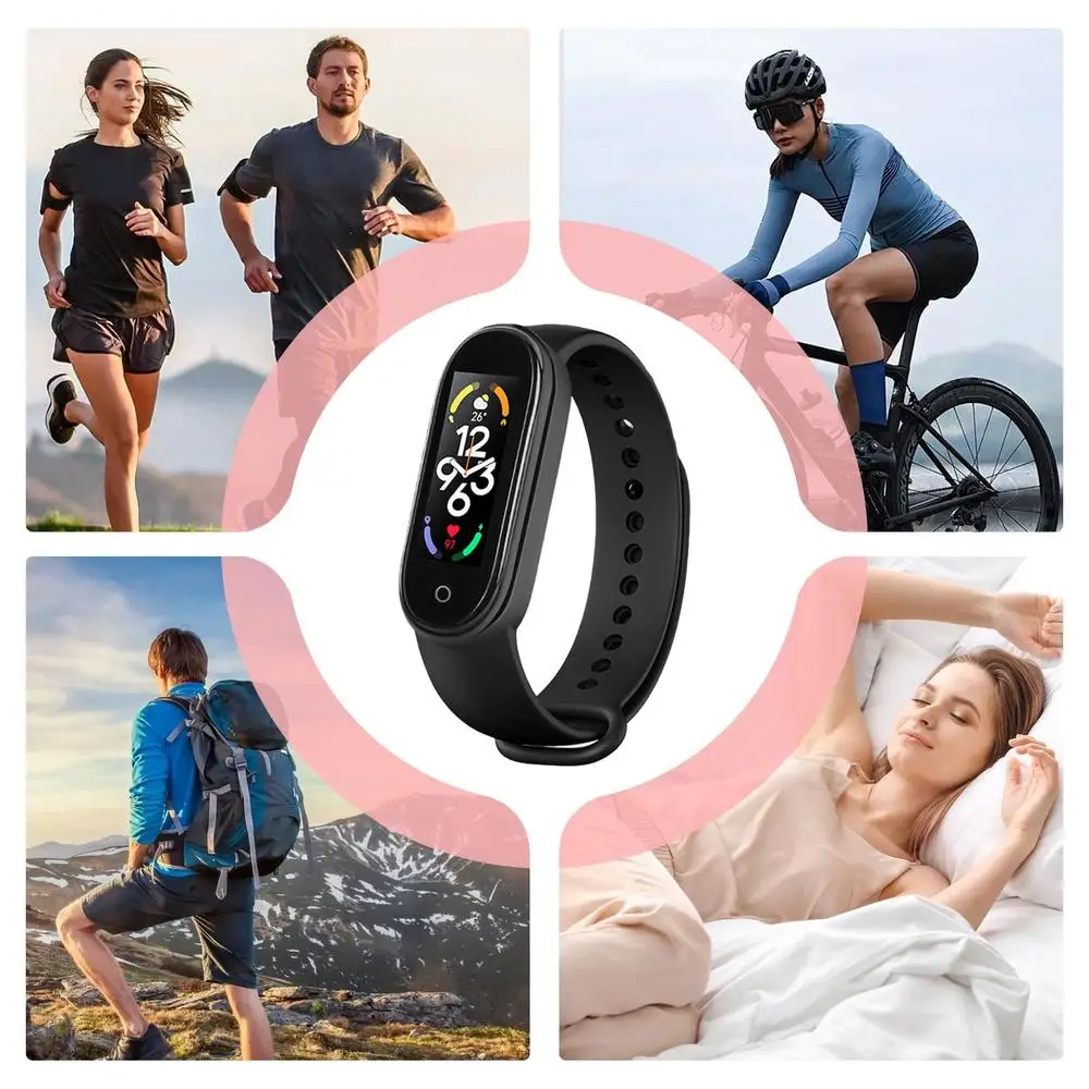 3.Widely Used: Keep tabs on your overall well-being with our smart bracelet. Get detailed reports on your heart rate, blood pressure, and activity levels, along with sleep tracking, weather forecasts, pedometer, and music controls. The data syncs with a mobile app for a thorough understanding of your health status and exercise routines